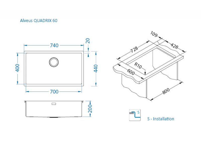Kuhinjske sudopere  QUADRIX   spadaju u izuzetno kvalitetne sudopere,  a izrađene su  od plemenitog nerđajućeg čelika AISI 304 (CrNi 18-10). Neke od posuda možemo montirati kako površinski, tako i podgradno. Dostupne su u  6 različitih modela  sa strukturom povšine  BRS(brušeno- nehrđajući čelik koji se pojavljuje na pomalo tamnoj i i elegantno izgrebanoj površini). Sa  natprosečnom  dubinom   od 200 mm  sa debljinom lima 1 mm, i radijusom  od 15 mm, vaša kuhinja može imati prestižan izgled, a po razumnoj ceni. Pošto posude ugrađujemo sa donje strane kuhinjskog pulta, potrebno je  da materijal radne ploče bude vodootporan(kamen, granitni materijal ili vodootporno obrađeno drvo), tako da rub sudopere, tj. posude bude prekriven kuhinjskim pultom. Na taj način se omogućava znatno povećanje radne površine. Funkcionalna kombinacija predstavljena je poklopcima TriTop u dve dimenzije koje time povećavaju značajno radnu površinu po potrebi, ovaj poklopac dodaje površinu za sušenje, te na kraju i sakriva samu sudoperu nakon upotrebe. Načini ugradnje mogu biti: podgradni(U), površinsko usadni(S) i potpuno usadni(F). Sudopere QUADRIX  idu bez sifona (28136) Dodatna oprema:
