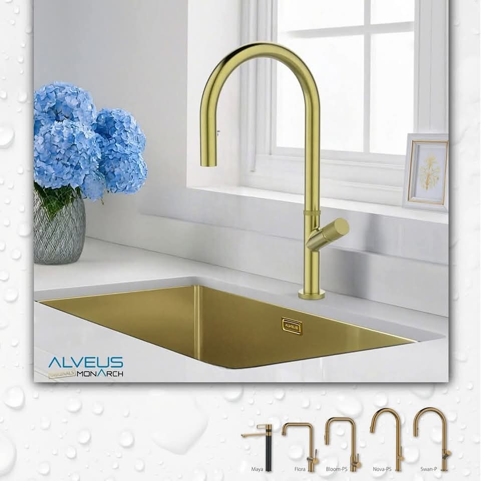 U beloj kuhinji sa mermernom pločom, zlatna sudopera i slavina reflektuju svetlost i stvaraju topao sjaj. U tamnijim kuhinjama, postaju snažan kontrast i centralni akcenat.